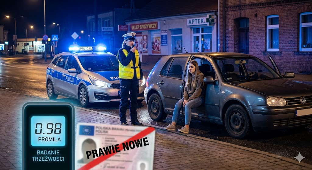 Sierpc: 19-latka wsiadła za kierownicę z blisko promilem. Grozi jej 3 lata więzienia.